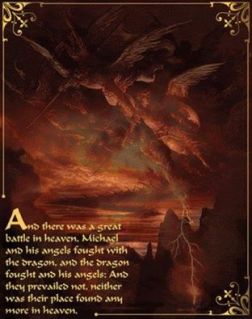 “8, 9. The battle is waged in the Church, the kingdom of heaven, from which the dragon and his angels are cast out and hurled down to earth. The earth symbolizes the nations hostile to the Church—the world over which Satan rules. By the aid of St. Michael, the Church shall purge herself of all heretics, schismatics, and apostates…”[10]